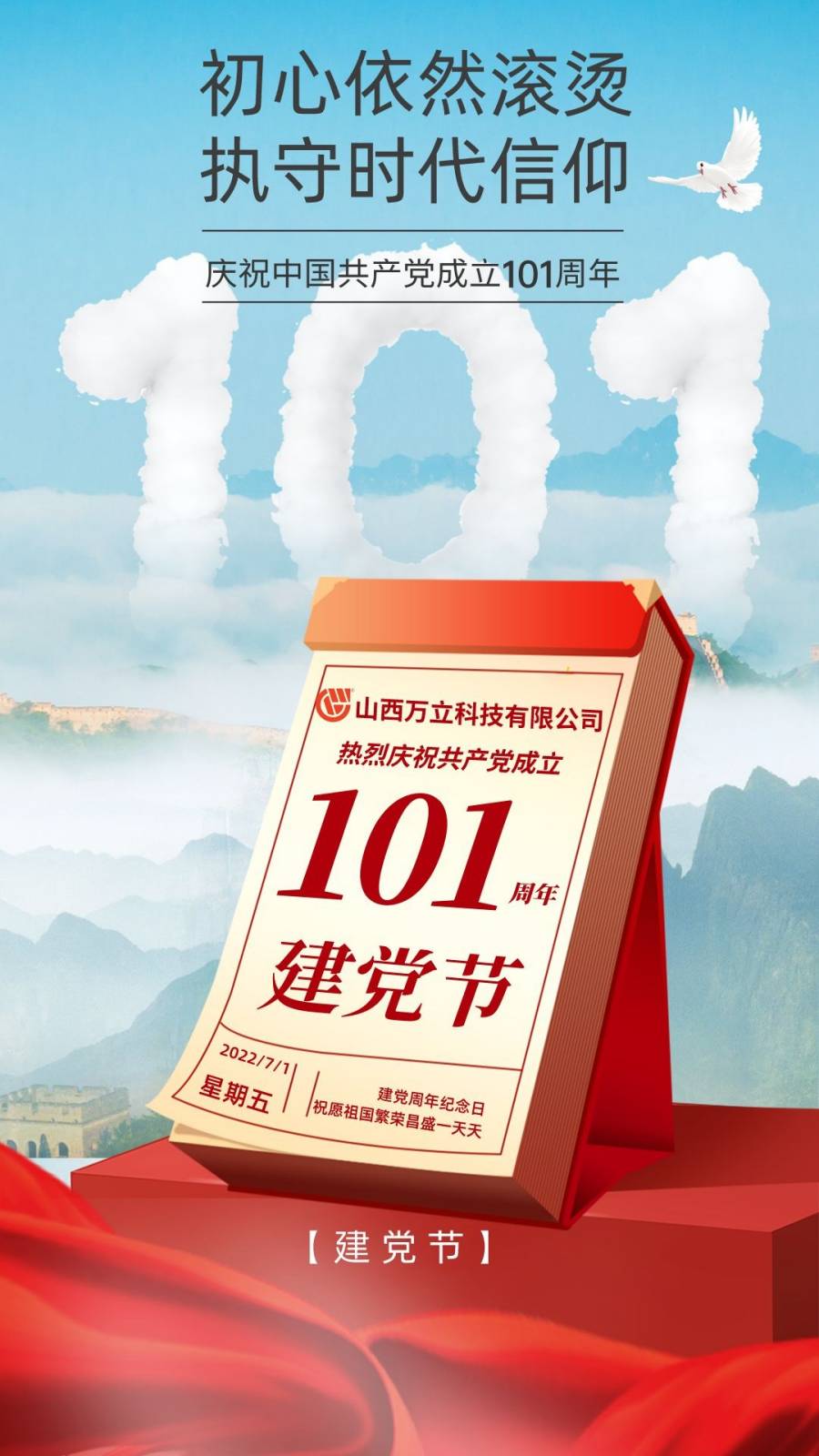 山西萬立科技有限公司熱烈慶祝中國共產(chǎn)黨建黨101周年,偉大征程,初心不變!