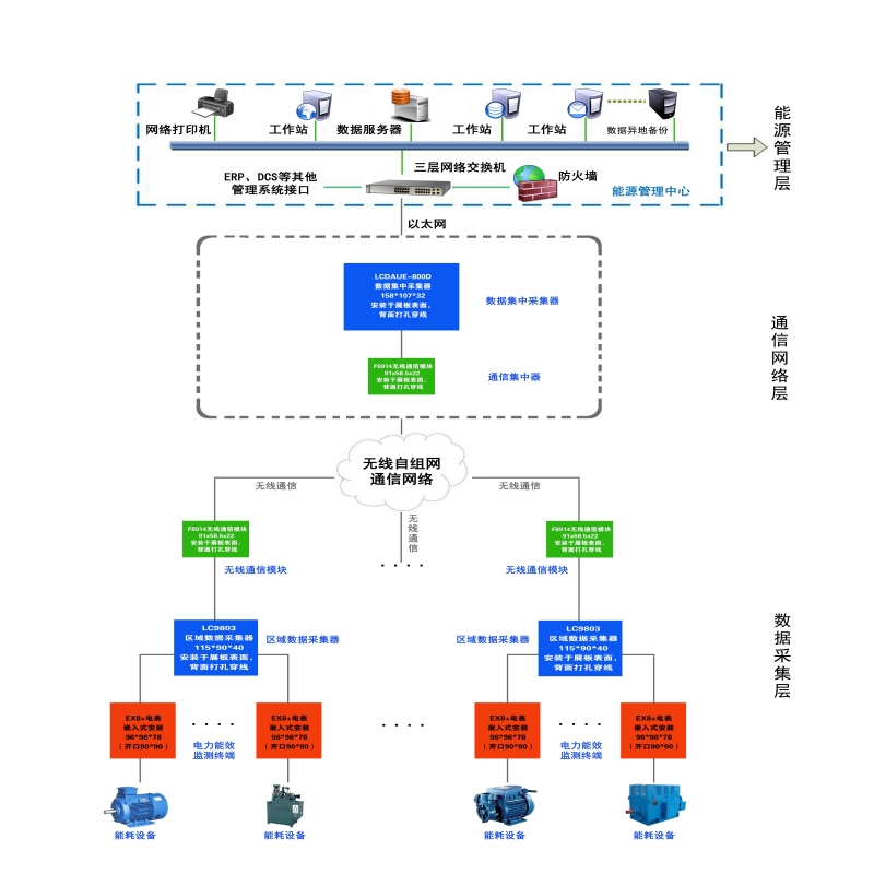 ○ 數(shù)據(jù)采集層:電力能效監(jiān)測(cè)終端、區(qū)域數(shù)據(jù)采集器。